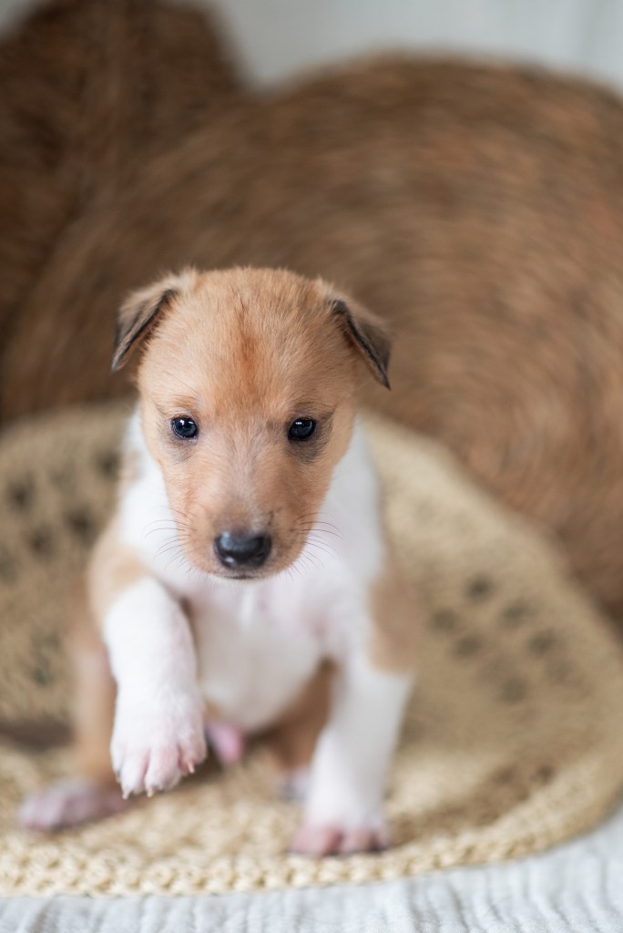 Die Welpen hatten ziemlich leichte Geburtsgewichte und waren etwas schlapp. Die ersten Wochen haben wir ordentlich gepäppelt. Mit Erfolg. Die kleinen haben ihren Rückstand aufgeholt und haben mittlerweile Durchschnittsgewichte.